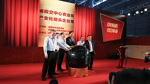 儀式由省農委主任孫正東主持,省政府金融辦主任周建春做了熱情洋溢的致辭,副省長梁衛國、省政府副秘書長劉永春、省政府金融辦主任周建春、省農委副主任陳衛東、國元證券董事長集體為農業板開板,省股交中心董事長宣讀掛牌企業名單。出席儀式的領導和嘉賓,還有省發改委、省財政廳、人民銀行合肥中心支行、省銀監局、省證監局、省保監局領導,首批農業板掛牌企業負責人和金融機構代表,以及國內知名媒體記者。