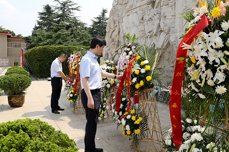 全體黨員參觀了合肥蜀山烈士陵園,并在人民英雄紀念碑前舉行敬獻花籃儀式。儀式開始之后全場肅立,全體黨員瞻仰人民英雄紀念碑,丁毅委員及屠思強委員走向紀念碑向革命烈士敬獻花籃。